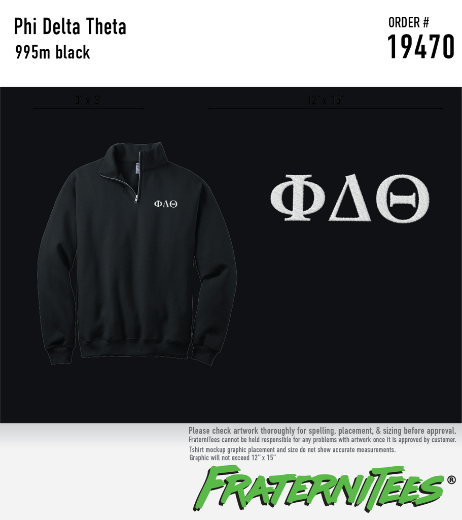 - Embroidered on a Black Jerzees 1/4 Zip Sweatshirt